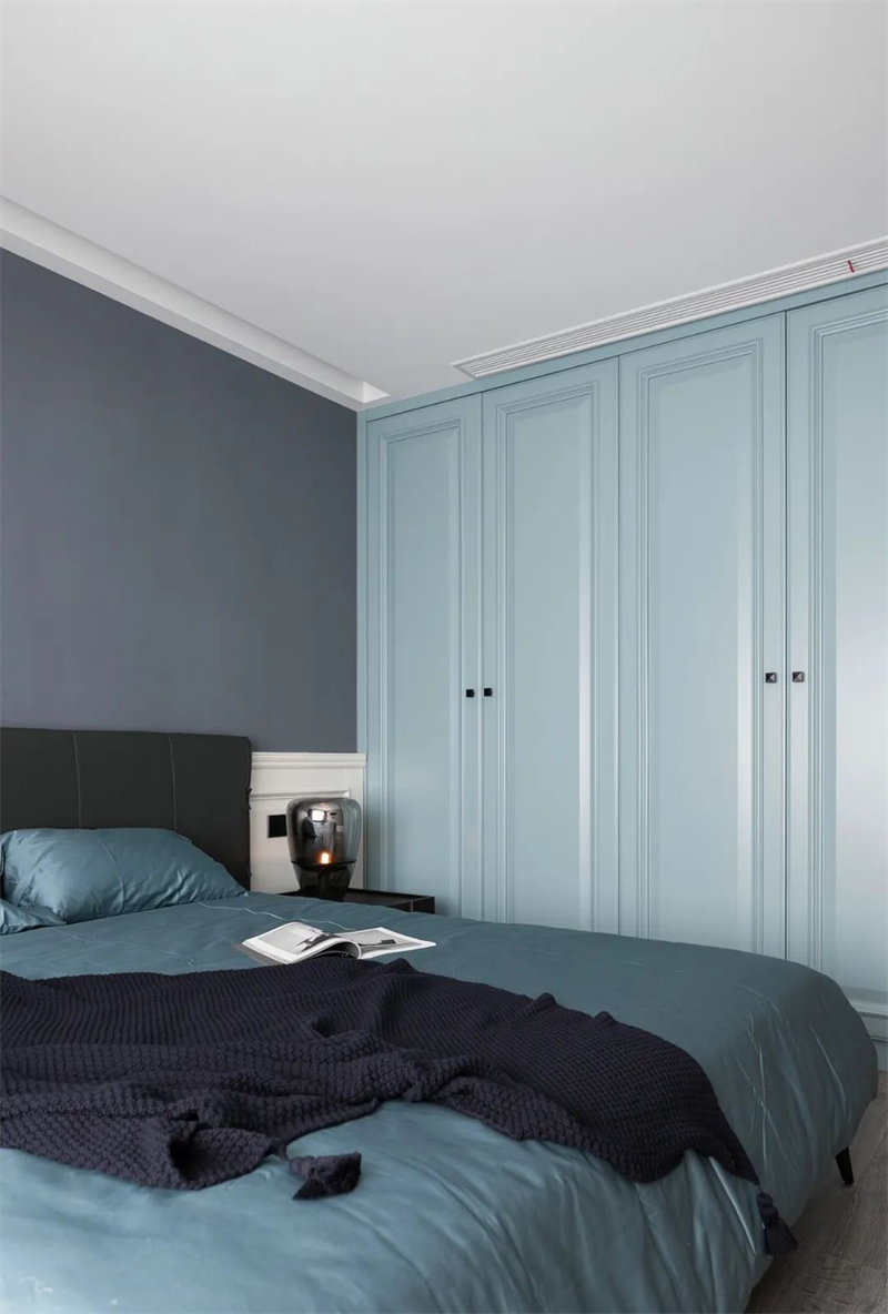 主卧采用了极简的设计语言,白色和浅灰色墙面搭配木色地板,突显整体空间的清新与宽敞感。床品选择了高质感的纯棉,搭配一些柔和的装饰枕,营造出温馨的氛围。简约的床头柜和灯具设计,为主人带来舒适轻松的睡眠空间。